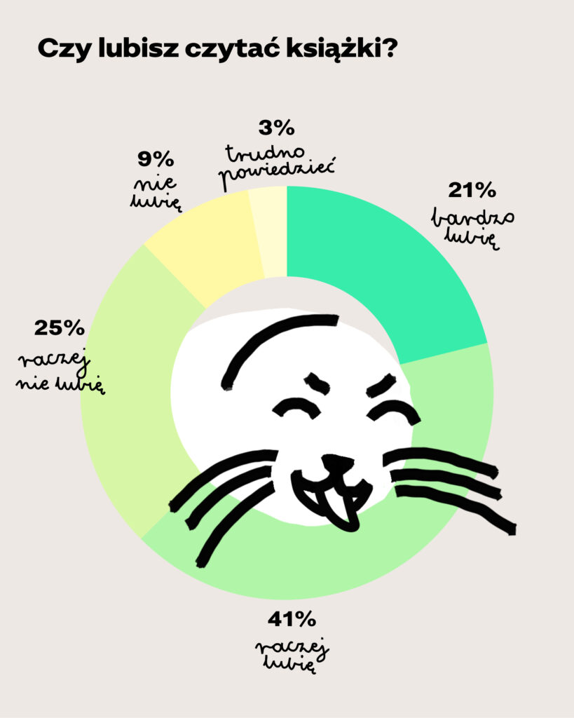 Zanim jednak zrobimy wielkie oczy i powiemy: „Ale jak to? Oni jednak kochają czytać!”, warto pamiętać o jednej rzeczy. Deklaracja „lubię czytać” bywa odpowiedzią społecznie pożądaną – każdy z nas, pytany publicznie o to, czy czyta, odruchowo odpowiada „tak”. To tak jak z pytaniem, czy lubimy warzywa. Każdy z nas odpowie „oczywiście!”. Co te wyniki mogą jednak oznaczać? To, że książka wciąż ma świetny wizerunek – jest czymś, z czym młodzi chcą się utożsamiać. A naszym zadaniem, w świecie pełnym bodźców, jest podsuwanie młodym takich historii, które będą wygrywać z ekranem.